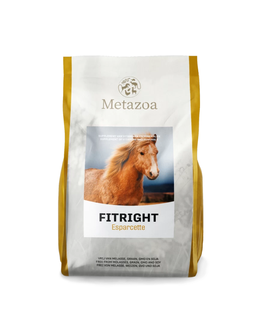 Metazoa FitRight Esparcette is een mengsel van essentiële vitaminen en mineralen met als drager de plantensoort esparcette. Ook bevat het product calciumcarbonaat, lijnzaad en zout. FitRight bevat slechts de 3% suiker die in esparcette voorkomt. Het is vrij van onnodige stoffen zoals melasse, graan en soja. De esparcetteplant bevat van nature een kleine hoeveelheid gecondenseerde tannines.