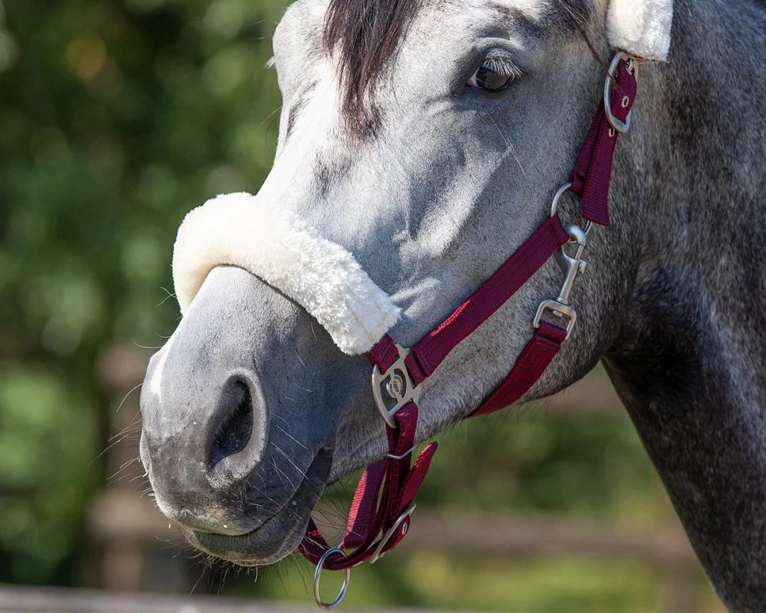 • Voorzien van afneembare imitatiewollen voering om het kopstuk en de neusriem