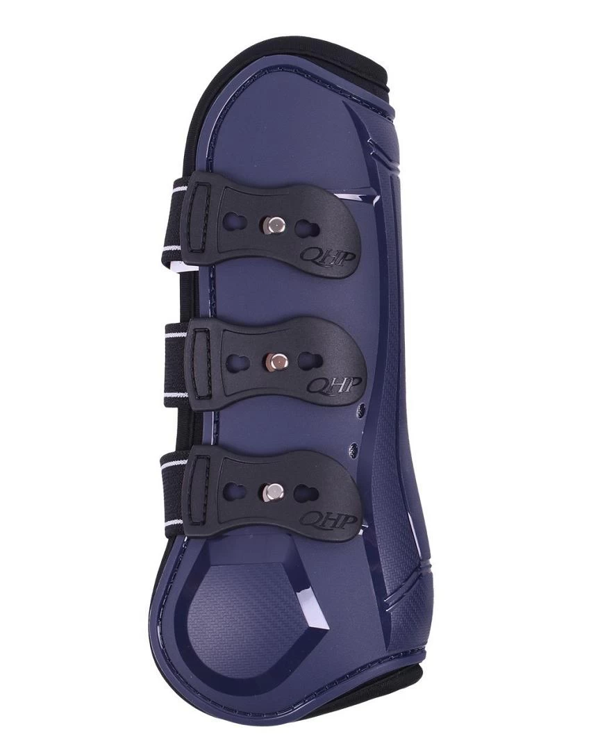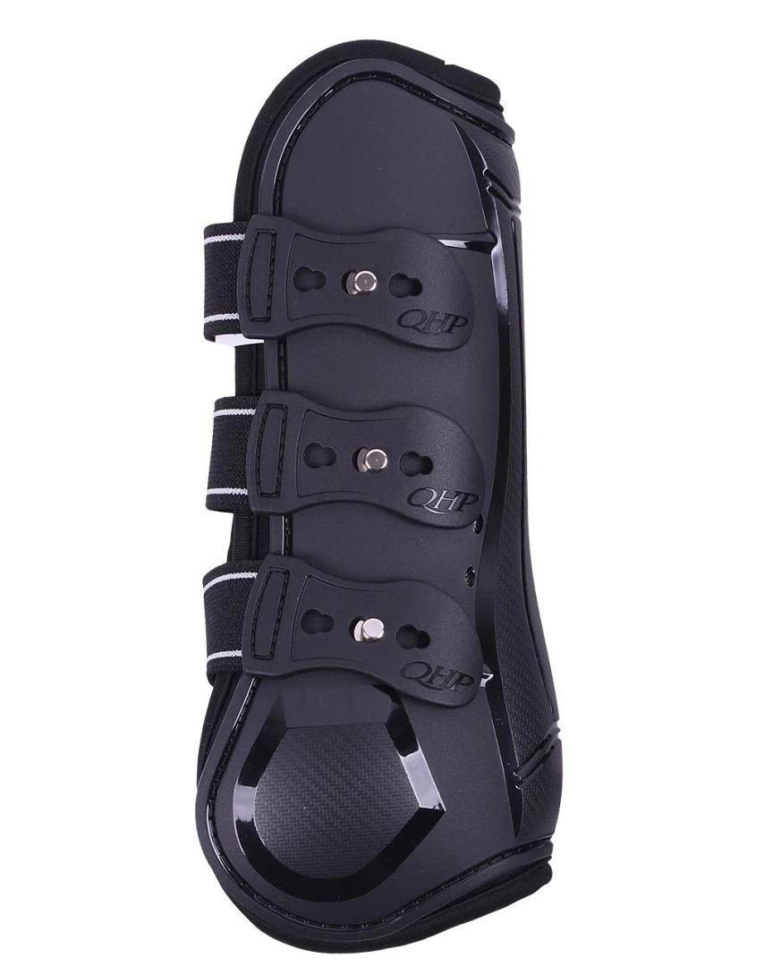 Bescherm de pezen van jouw paard tegen aantikken met deze sportieve QHP peesbeschermers Champion. Door de speciale airflow neopreen voering worden warmte en vocht goed afgevoerd. De luchtgaatjes in de schaal bij de pezen zorgen er daarnaast ook voor dat de benen niet te warm worden. De beschermers zijn gemakkelijk te bevestigen met de elastische snelsluitingen.
