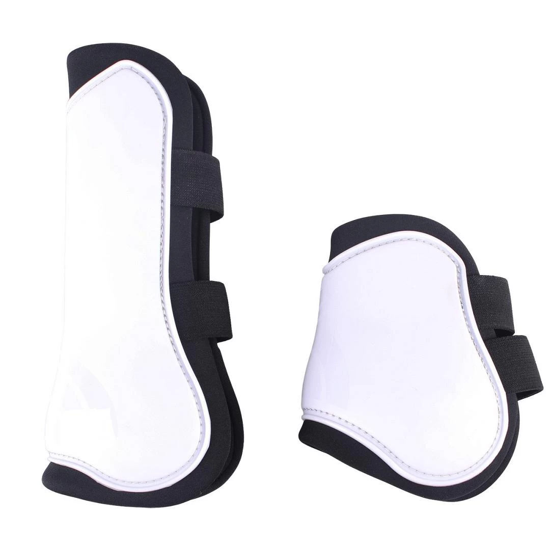 Bescherm de pezen en achterbenen van jouw paard tegen aantikken met deze sportieve peesbeschermerset. De beschermers zijn gemaakt van harde plastic schaal en voorzien van een neopreen voering. De beschermers zijn gemakkelijk te bevestigen met de elastische snelsluitingen.