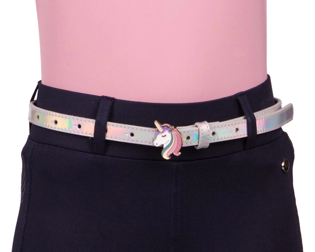 QHP Riem Junior Collection Rainbow/Unicorn is een riem voorzien van een gesp met unicorn of bit.