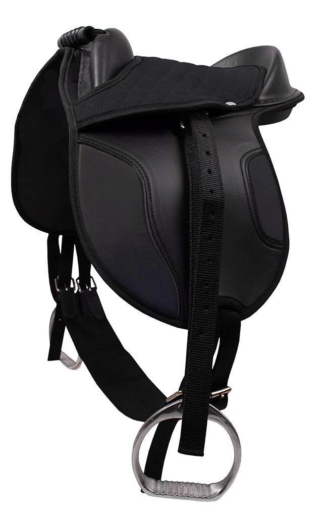 Aan de voorkant een handvat waar ze zich aan vast kunnen houden. Ook is het zadel aan de achterzijde voorzien van een ring waar eventueel een staartriem aan bevestigd kan worden.