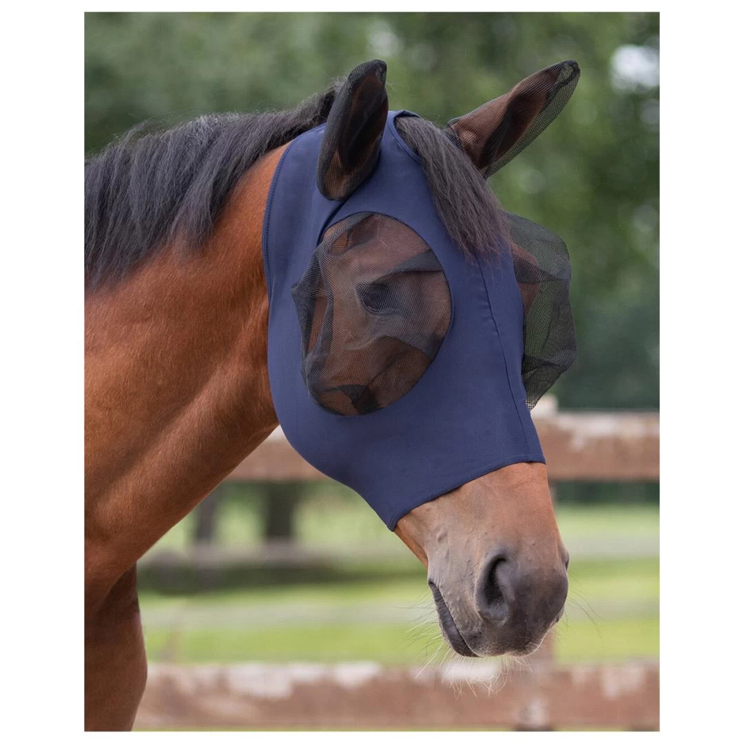Vliegenmasker Super bug is ontworpen om het dragen van een vliegenmasker zo comfortabel mogelijk te maken voor het paard. De gladde en elastische stof voelt aan als een tweede huid. Het mesh bij de oren en ogen zorgt voor een helder zicht en houdt de vliegen en insecten weg. Daarnaast zorgt de opening aan de voorkant dat de voorpluk vrij blijft. Het masker is eenvoudig te sluiten met de rits aan de onderkant.