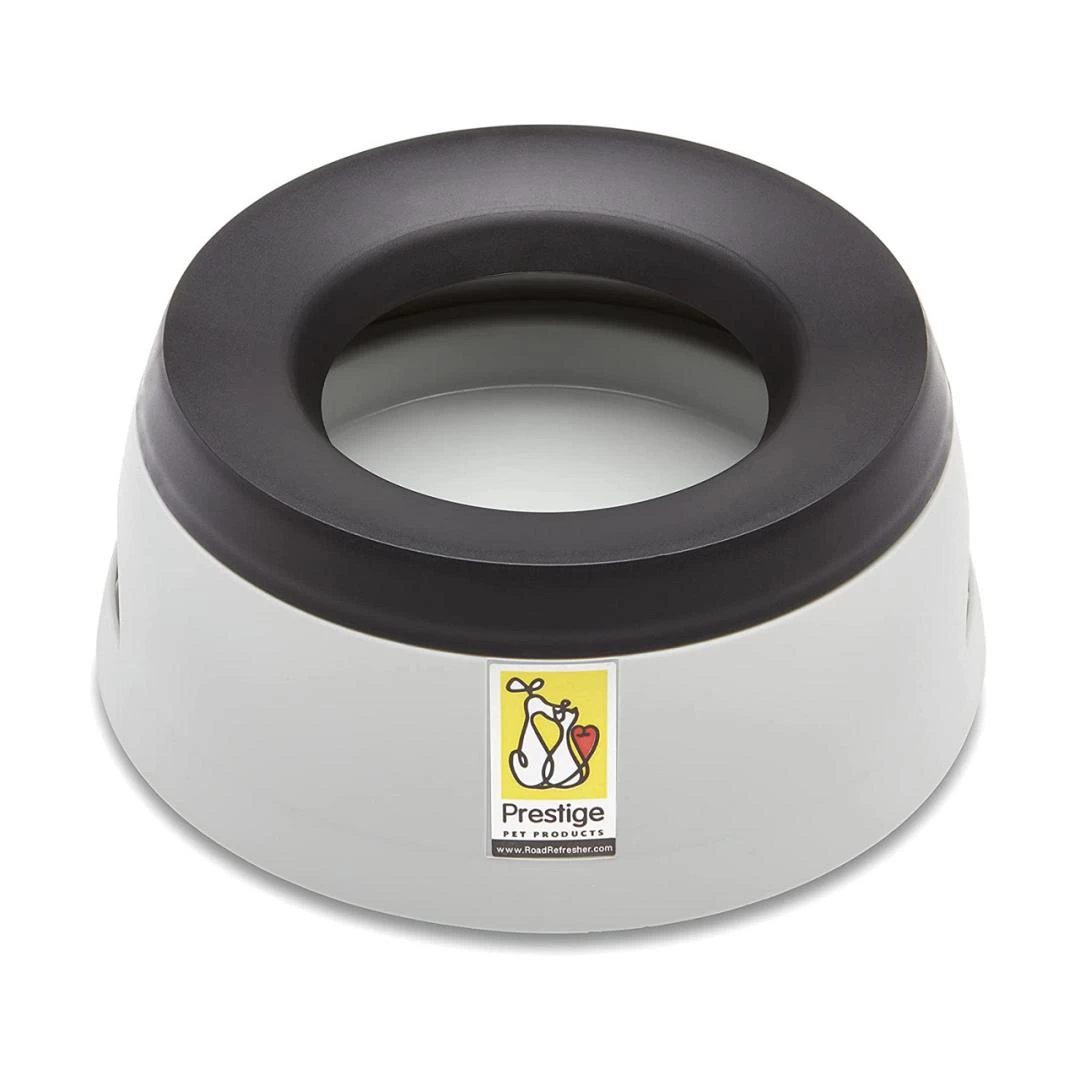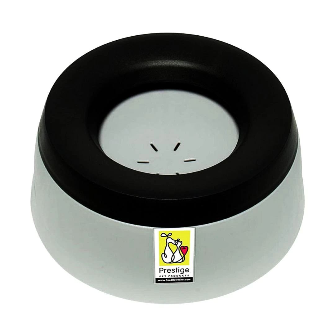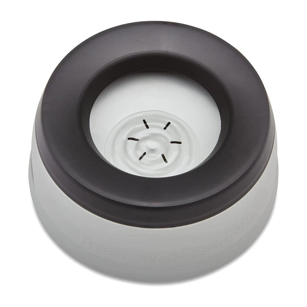 De Road Refresher is dé ideale drinkbak voor in huis, de bench, caravan, auto of voor op de boot! Deze drinkbak heeft een dubbele bodem (vlotter) met openingen, die ervoor zorgen dat er maar een klein laagje water op ligt. De hond drinkt hierdoor veel rustiger en minder gulzig. Een extra rand in combinatie met de vlotter voorkomt onnodig geknoei met water tijdens het drinken, bij een onverwachtse beweging van buitenaf of voorkomt het dat de oren van de hond in het water hangen.